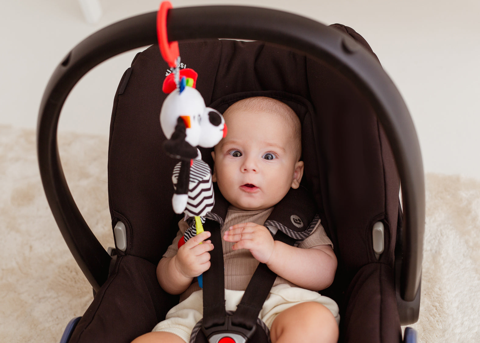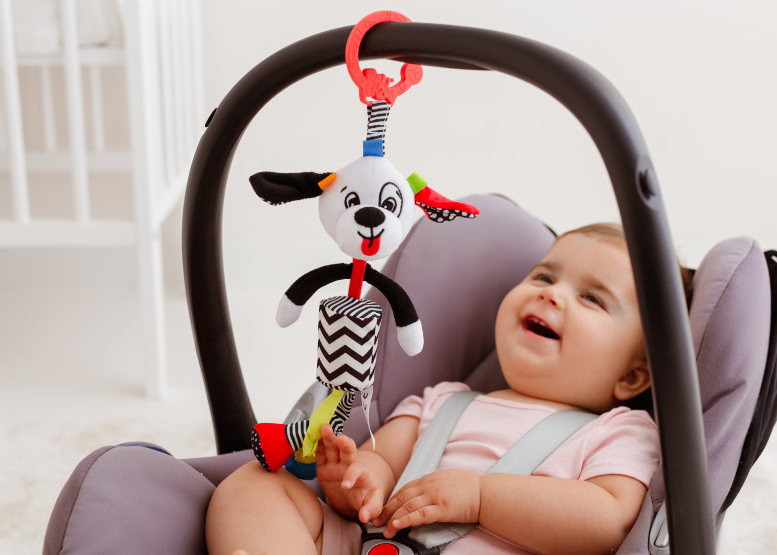 Pedro the Dog is a cheerful companion designed to engage your baby’s senses from day one. With rustling ears, soft fabric tags, and a bell hidden in his belly, Pedro delights little ones with sound, texture, and color. His high-contrast patterns support early visual development, while the attached clip makes it easy to take him on walks, car rides, or attach to a stroller or crib.