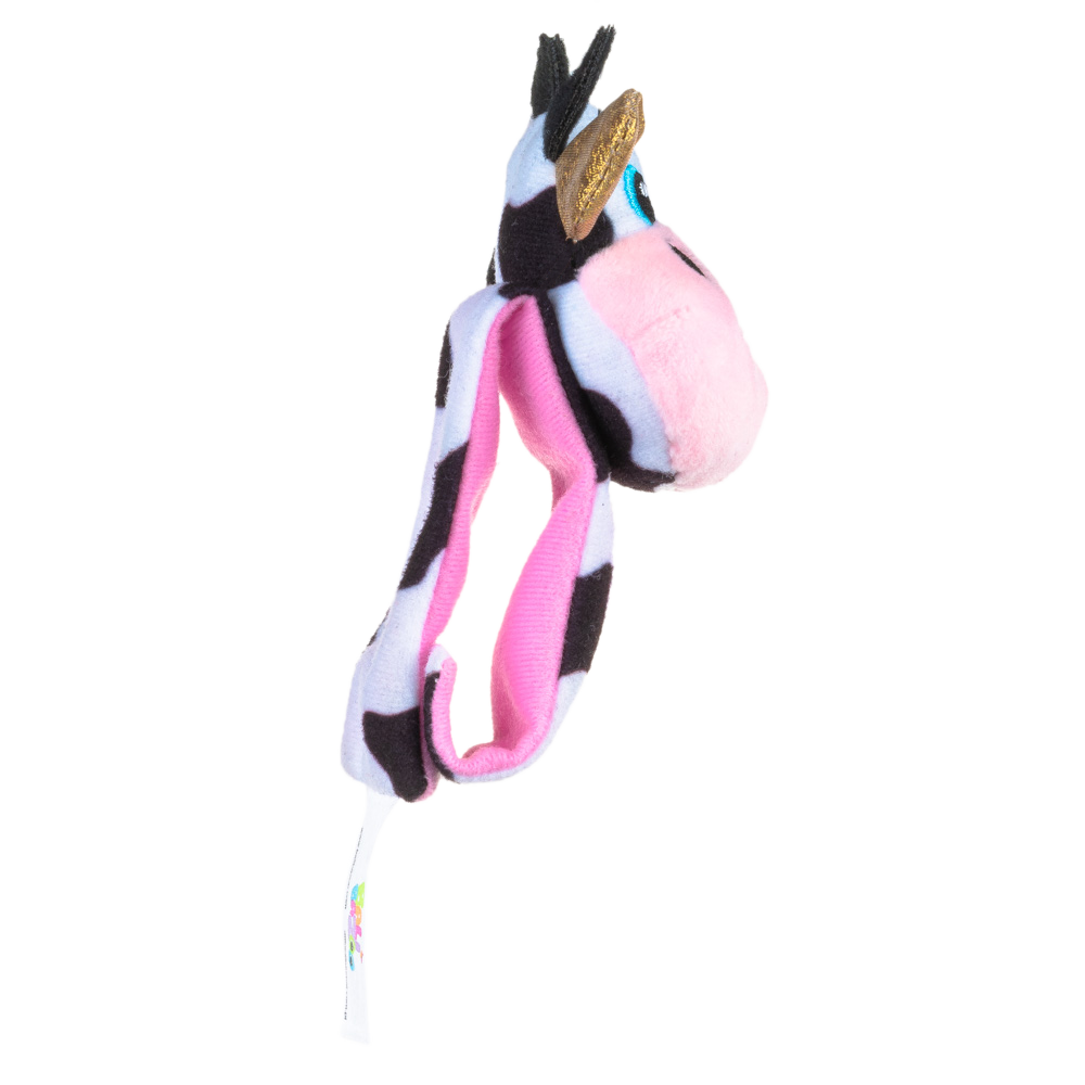Includes two rattles: cow and cockerel